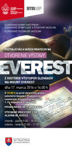Vo štvrtok 17. marca 2016 o 16.00 h sa bude v Košiciach otvárať výstava Everest. Pred otvorením výstavy o 15:00 bude beseda s Vladimírom Launerom, priamym účastníkom 1. čs. expedície v roku 1984